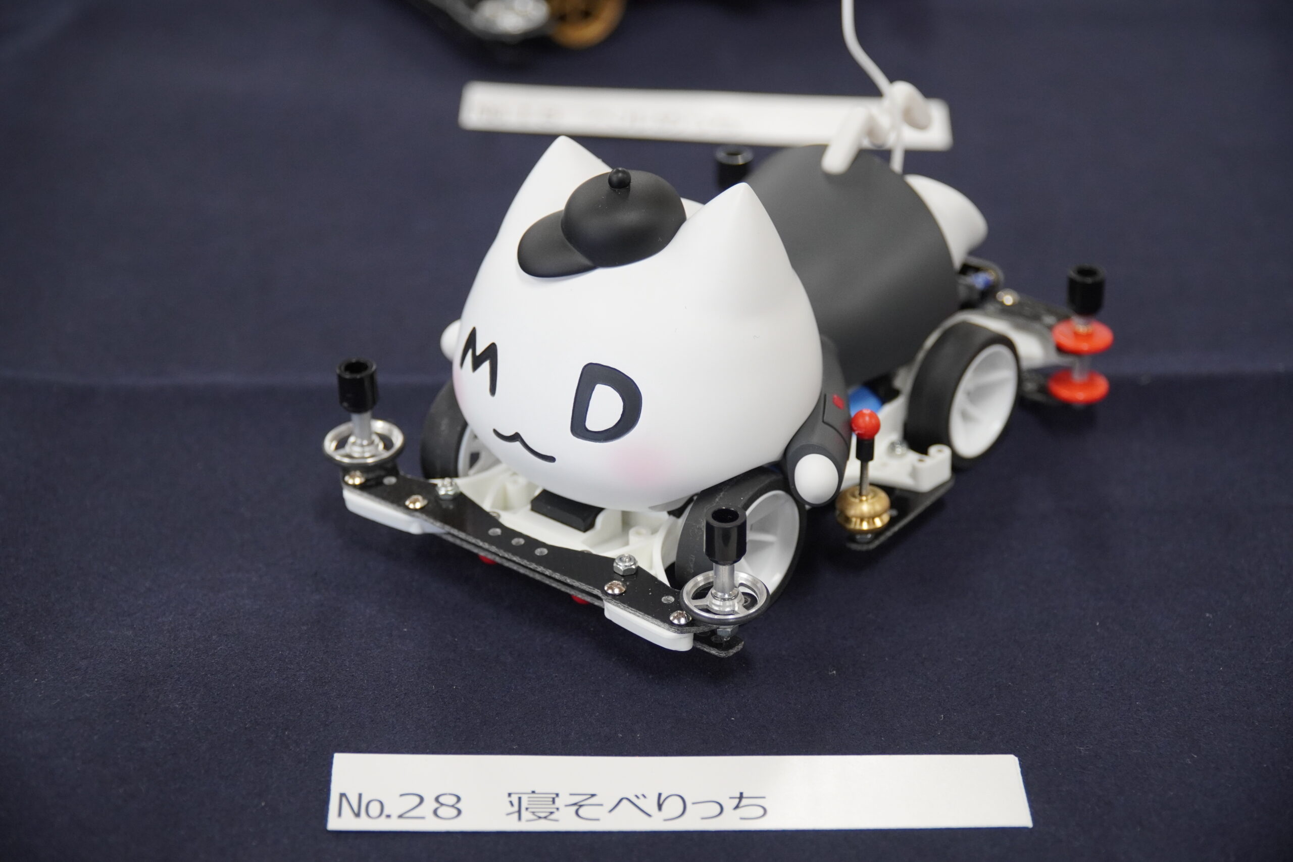 「みなっち」が寝そべるデザインです。光造形機という大型の3Dプリンターを使い、紫外線硬化樹脂でパーツを製作。高度な表面処理技術により、なめらかな質感が表現されています。しっぽは取り外しが可能です。ボディーのみの販売、市販のMAシャーシに装着可能。